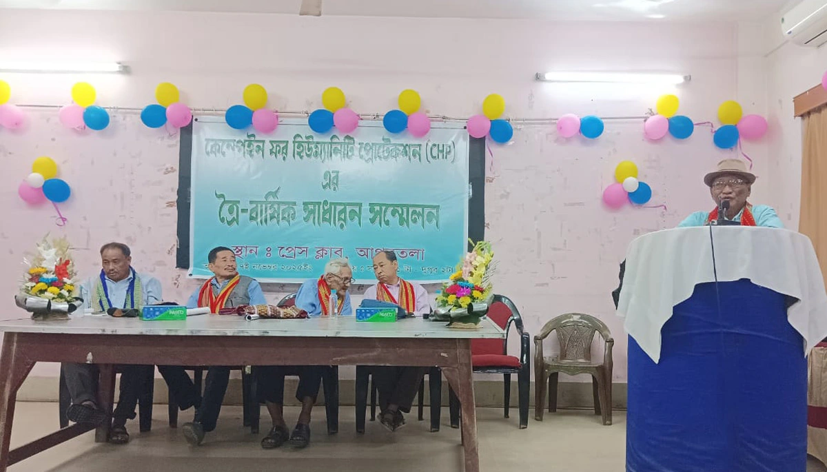 হিল ভয়েস, ১৮ নভেম্বর ২০২৫, আন্তর্জাতিক ডেস্ক: ভারতের ত্রিপুরা ভিত্তিক মানবাধিকার সংগঠন ‘ক্যাম্পেইন ফর হিউম্যানিটি প্রোটেকশন’ (সি.এইচ.পি)-এর ত্রি-বার্ষিক সম্মেলন অনুষ্ঠিত হয়েছে। ত্রিপুরা রাজ্যের রাজধানী আগরতলার প্রেসক্লাবে গতকাল সোমবার (১৭ নভেম্বর) এ সম্মেলন অনুষ্ঠিত হয়। দুই পর্বে অনুষ্ঠিত এ সম্মেলনের প্রথম পর্বে সকালে এক আলোচনা সভা অনুষ্ঠিত হয়। মধ্যাহ্ন বিরতির পর বিকালে দ্বিতীয় পর্বে সংগঠনের কাউন্সিল অনুষ্ঠিত হয়।