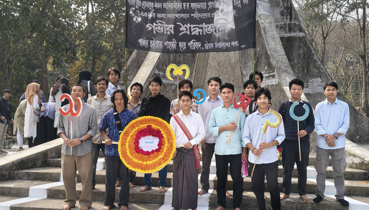 চট্টগ্রাম: মহান শহীদ দিবস ও আন্তর্জাতিক মাতৃভাষা দিবস ২০২৬ উপলক্ষে চট্টগ্রামে কেন্দ্রীয় শহীদ মিনারে শ্রদ্ধাঞ্জলি জ্ঞাপন করেছে পার্বত্য চট্টগ্রাম পাহাড়ী ছাত্র পরিষদ, চট্টগ্রাম মহানগর শাখা। ‘পার্বত্য চট্টগ্রামের আদিবাসী জাতিসত্তার মাতৃভাষায় প্রাথমিক শিক্ষা চালু কর’ – এই দাবি সম্বলিত ব্যানার উঁচিয়ে মিছিল সহকারে প্রতিবছরের ন্যায় এবছরও একুশে ফেব্রুয়ারির প্রথম প্রহরে শ্রদ্ধা নিবেদন করে পিসিপি। এসময় পিসিপির চট্টগ্রাম মহানগর শাখার সভাপতি আদর্শ চাকমা, সাংগঠনিক সম্পাদক আশুতোষ তঞ্চঙ্গ্যা, পিসিপির কেন্দ্রীয় সদস্য আইচুক ত্রিপুরা প্রমুখ নেতৃবৃন্দ উপস্থিত ছিলেন।