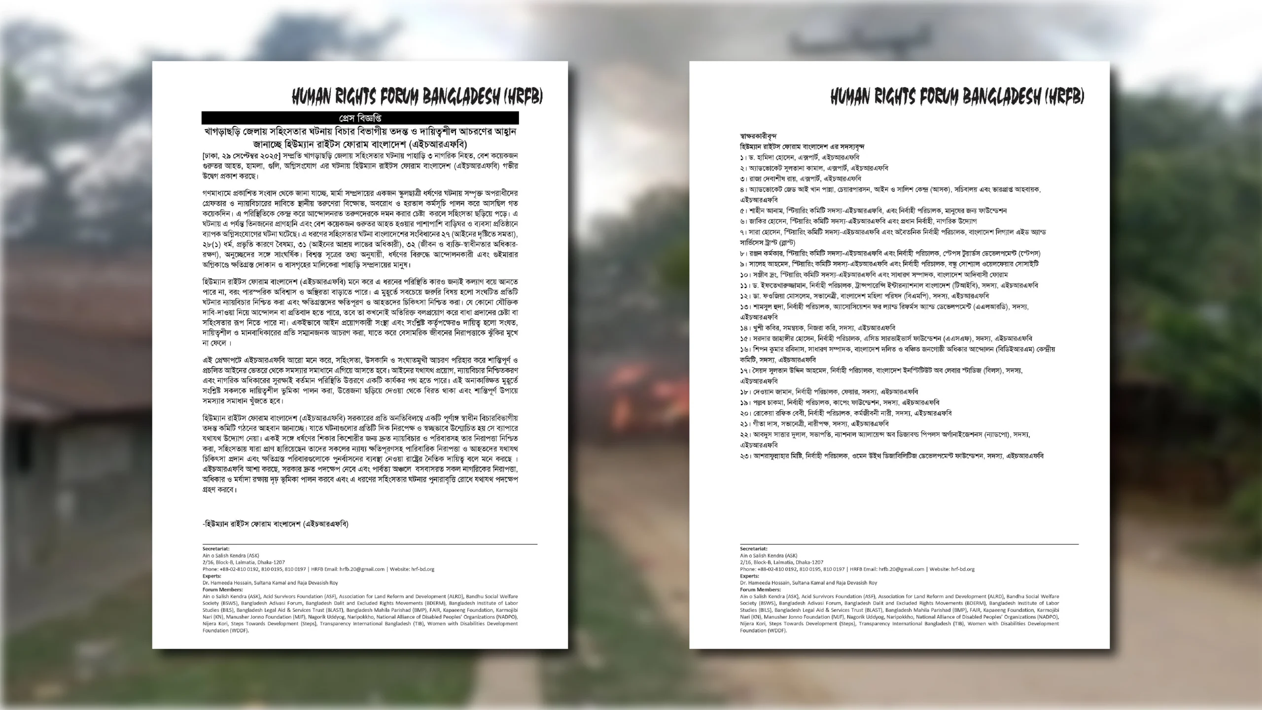 হিল ভয়েস, ৩০ সেপ্টেম্বর ২০২৫, ঢাকা: সম্প্রতি খাগড়াছড়ি জেলায় সহিংসতার ঘটনায় ৩ নাগরিক নিহতসহ বেশ কয়েকজন গুরুতর আহত, হামলা, গুলি, অগ্নিসংযোগ এর ঘটনায় হিউম্যান রাইটস ফোরাম বাংলাদেশ (এইচআরএফবি) গভীর উদ্বেগ প্রকাশ করে একটি বিজ্ঞপ্তি প্রদান করেছে।