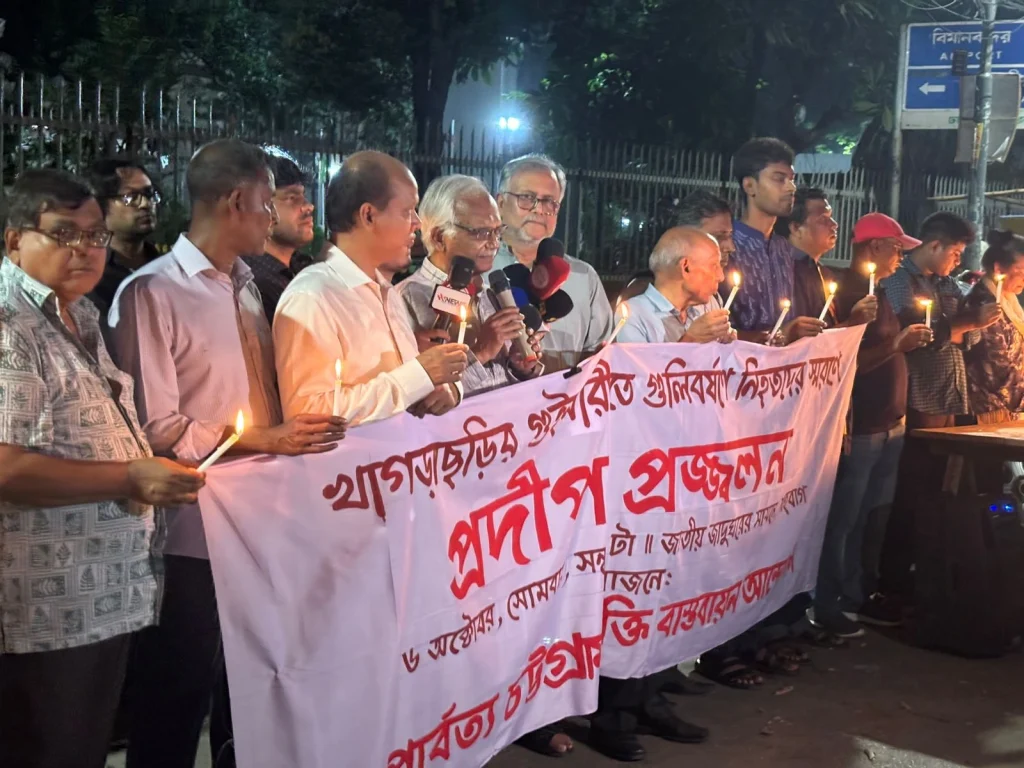 খাগড়াছড়ির গুইমারাতে গুলিবর্ষণে নিহতদের স্মরণে ঢাকায় প্রদীপ প্রজ্জ্বলন