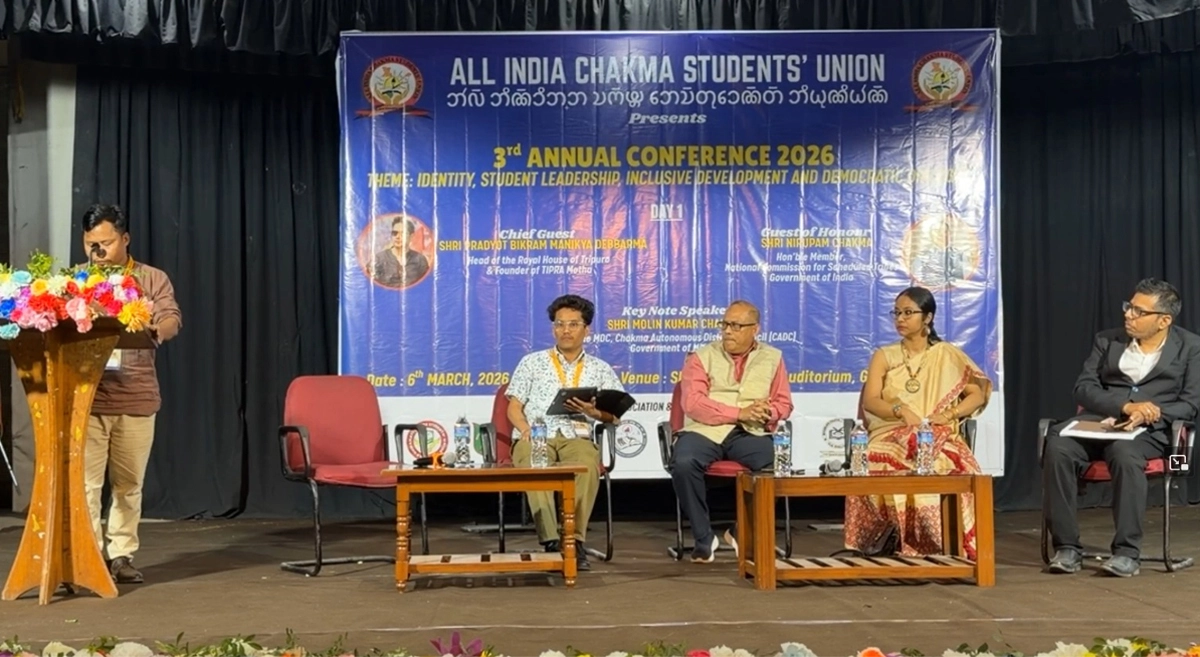 হিল ভয়েস, ৮ মার্চ ২০২৬, নিজস্ব প্রতিবেদক: গত শুক্রবার (৬ মার্চ) বিকাল ২ ঘটিকার সময়ে ভারতের আসাম রাজ্যের গুয়াহাটি শিল্পগ্রাম এনইজেডসিসি অডিটোরিয়ামে ‘Identity, Student Leadership, Inclusive Development and Democratic Dialogue’ স্লোগানকে সামনে রেখে অল ইন্ডিয়া চাকমা স্টুডেন্ট ইউনিয়ন (এআইসিএসইউ)’র উদ্যোগে আয়োজিত দুই দিনব্যাপী তৃতীয় বার্ষিক সম্মেলন শুরু হয়। এতে প্রথম দিনের দ্বিতীয় অধিবেশনে ‘পার্বত্য চট্টগ্রামে মানবাধিকার লঙ্ঘন, ১৯৯৭ সালের পার্বত্য চুক্তি বাস্তবায়ন না করা এবং আঞ্চলিক ও জাতীয় নিরাপত্তা’র উপর এর প্রভাব’ শীর্ষক এক সম্মেলন অনুষ্ঠিত হয়।