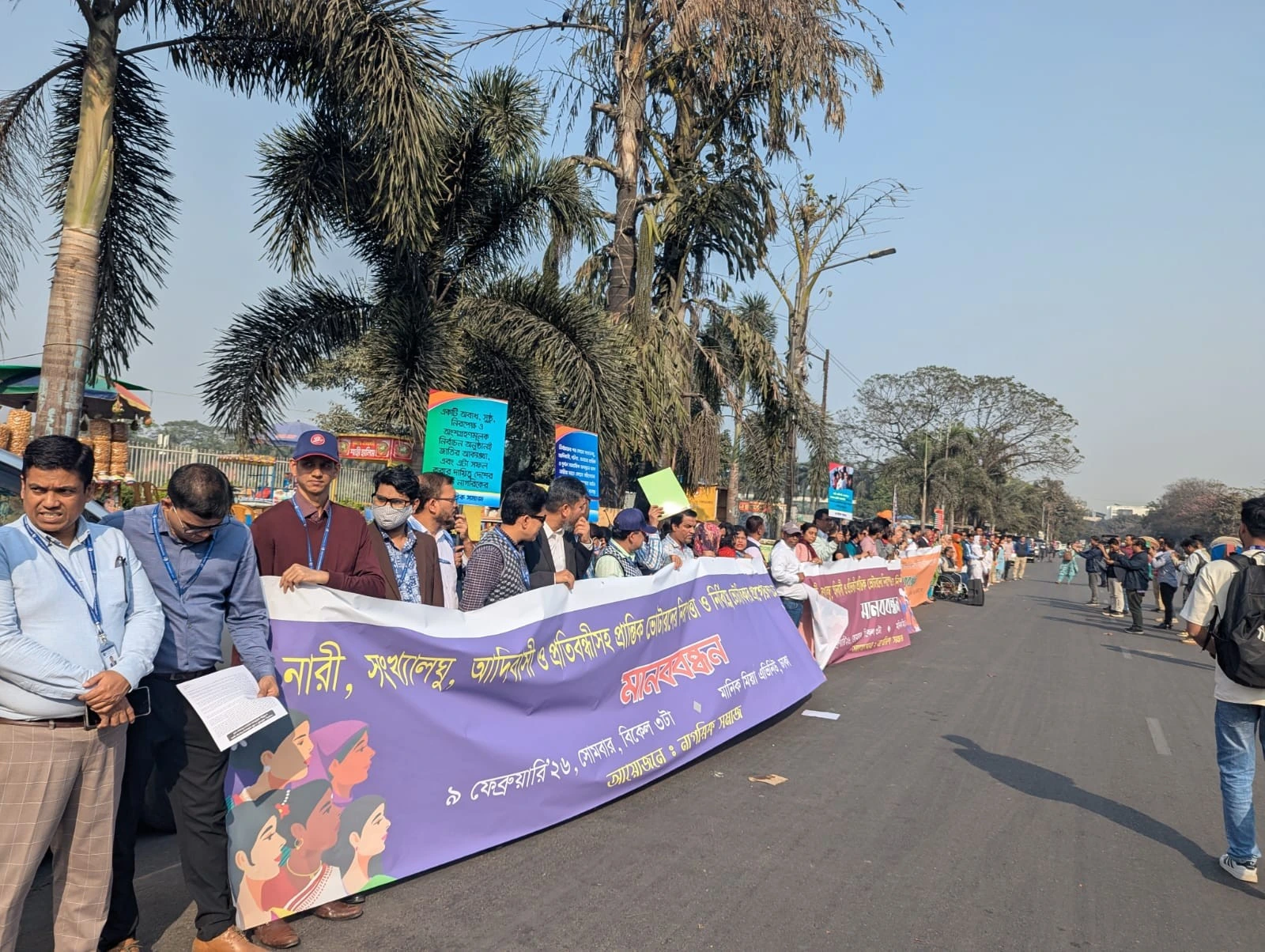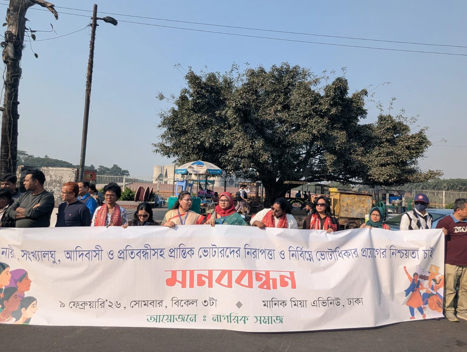 ঢাকায় সংখ্যালঘু, আদিবাসী ও নারী ভোটারদের সুরক্ষা নিশ্চিতের দাবিতে নাগরিক সমাজের মানববন্ধন অনুষ্ঠিত