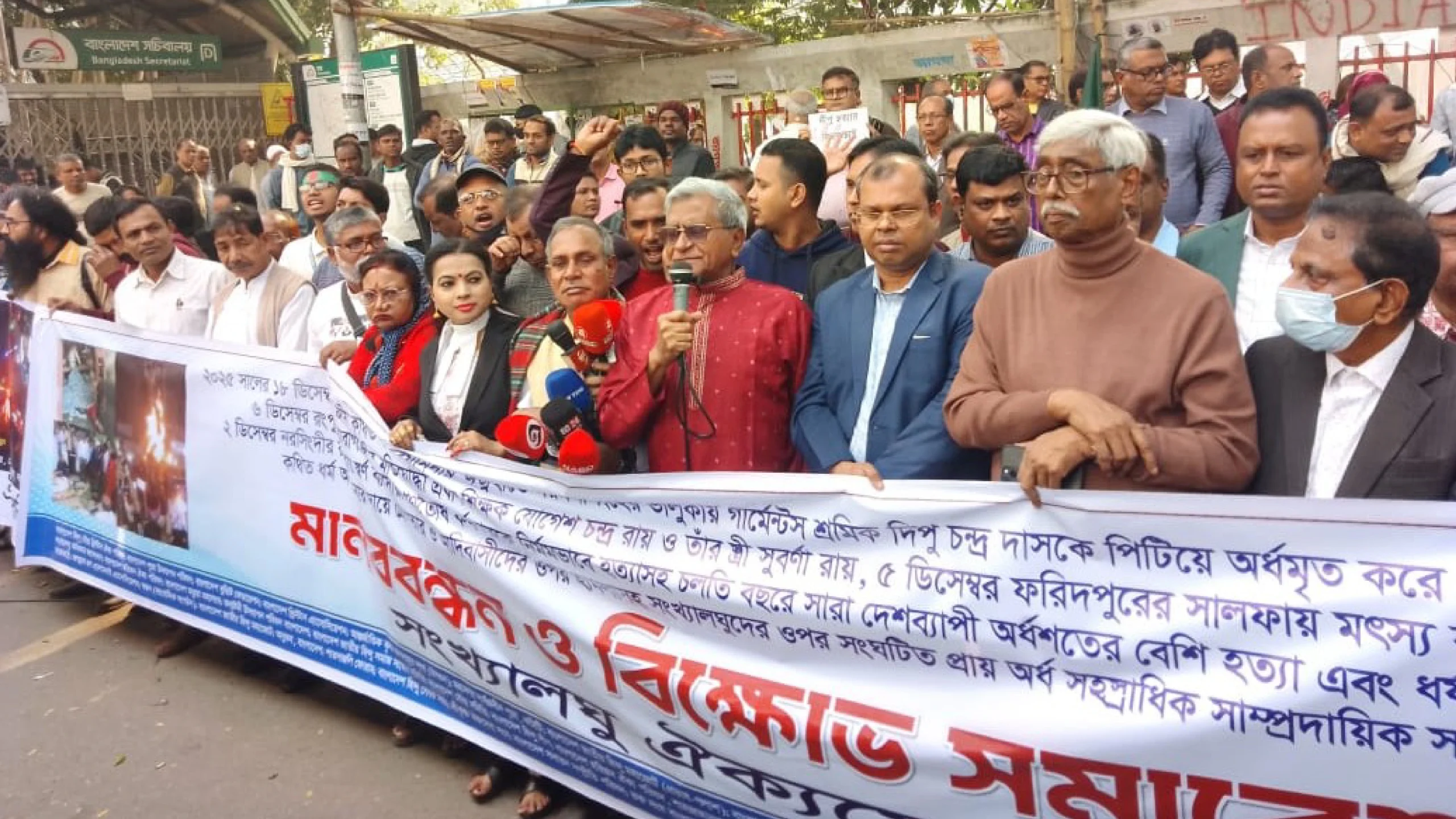 বাংলাদেশ হিন্দু বৌদ্ধ খ্রিস্টান ঐক্য পরিষদের ভারপ্রাপ্ত সাধারণ সম্পাদক মনীন্দ্র কুমার নাথের স্বাক্ষরিত এক প্রেস বিজ্ঞপ্তিতে বলা হয় যে, শুধুমাত্র ডিসেম্বরের প্রথম তিন সপ্তাহেই ৫ জন সংখ্যালঘুকে নির্মমভাবে হত্যা করা হয়েছে। এর মধ্যে রয়েছে ২০২৫ সালের ২ ডিসেম্বর নরসিংদীর রায়পুরায় স্বর্ণ ব্যবসায়ী প্রাণতোষ কর্মকার, ৫ ডিসেম্বর ফরিদপুরের সালফায় মৎস্য ব্যবসায়ী উৎপল সরকার, ৬ ডিসেম্বর রংপুরের তারাগঞ্জে বীর মুক্তিযোদ্ধা প্রধান শিক্ষক যোগেশ চন্দ্র রায় ও তাঁর স্ত্রী সুবর্ণা রায় এবং ১৮ ডিসেম্বর রাত ৯টায় কথিত ধর্ম অবমাননার অজুহাতে ময়মনসিংহের ভালুকায় গার্মেন্টস শ্রমিক দিপু চন্দ্র দাসকে পিটিয়ে অর্ধমৃত করে গাছে ঝুলিয়ে আগুনে পুড়িয়ে বর্বরোচিতভাবে হত্যা।