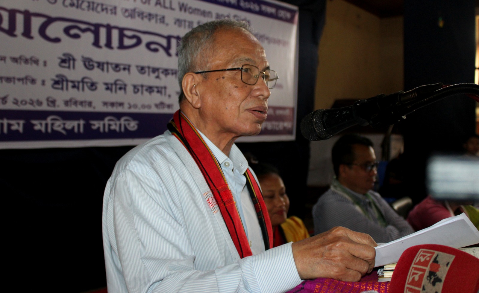বিশেষ অতিথির বক্তব্যে শিশির চাকমা বলেন, পার্বত্য চট্টগ্রামসহ সমগ্র বাংলাদেশে নারীদের সামগ্রিক অবস্থা এখনও অত্যন্ত নাজুক। বিভিন্ন মানবাধিকার সংস্থার প্রতিবেদন পর্যালোচনা করলে স্পষ্টভাবে বোঝা যায় যে, প্রতিবছর বিপুল সংখ্যক নারী বিভিন্ন ধরনের সহিংসতার শিকার হচ্ছেন। এই প্রেক্ষাপটে পার্বত্য চট্টগ্রামের বাস্তবতা আরও উদ্বেগজনক। প্রান্তিক, বঞ্চিত ও নিপীড়িত জনগোষ্ঠীর অংশ হিসেবে পাহাড়ের নারীরা বহুমাত্রিক সহিংসতা ও বৈষম্যের শিকার হয়ে থাকে। রাষ্ট্রীয় নীতি ও অসম সামাজিক কাঠামোর কারণে তারা দীর্ঘদিন ধরেই অনগ্রসর অবস্থায় রয়েছে।