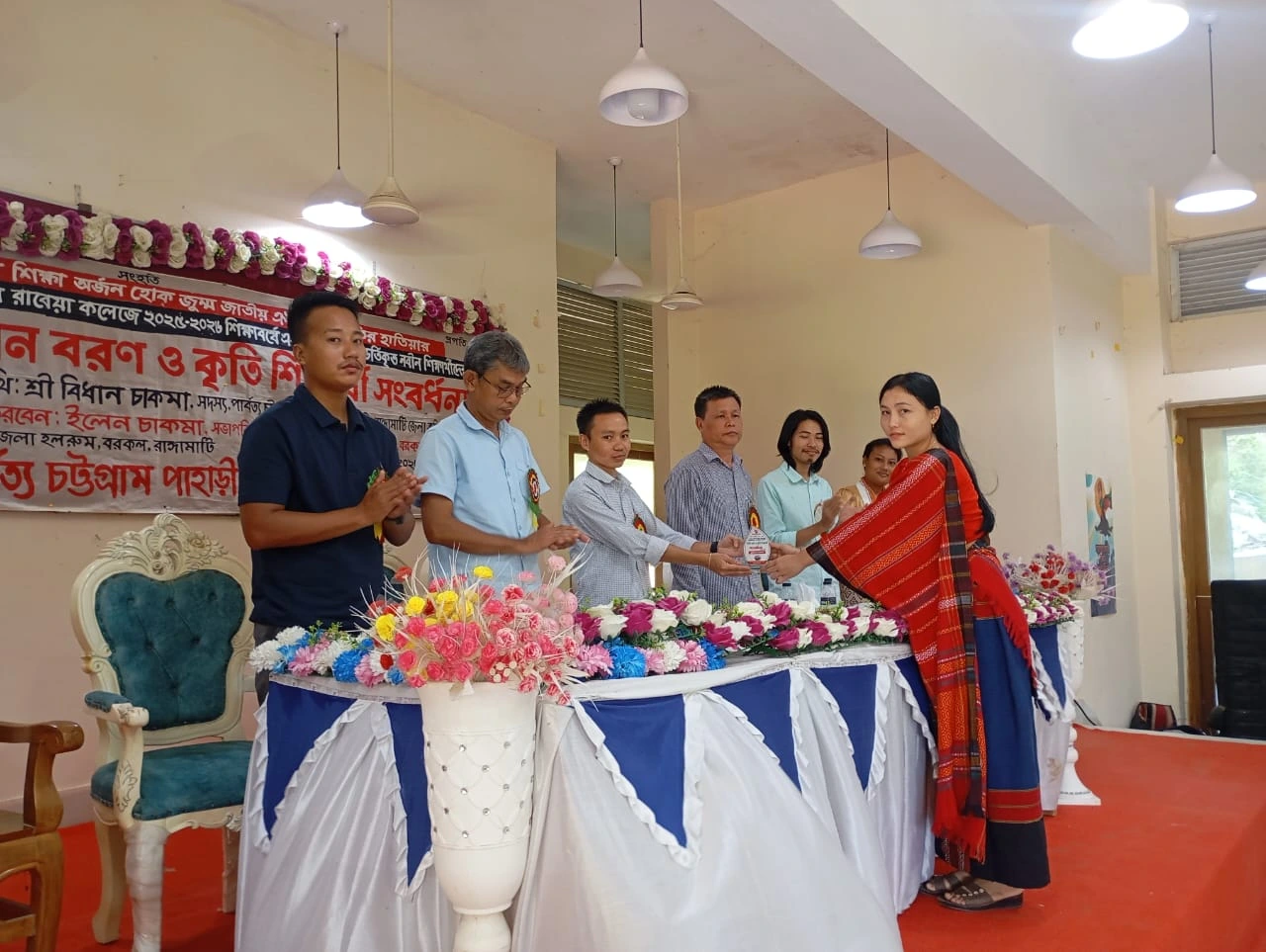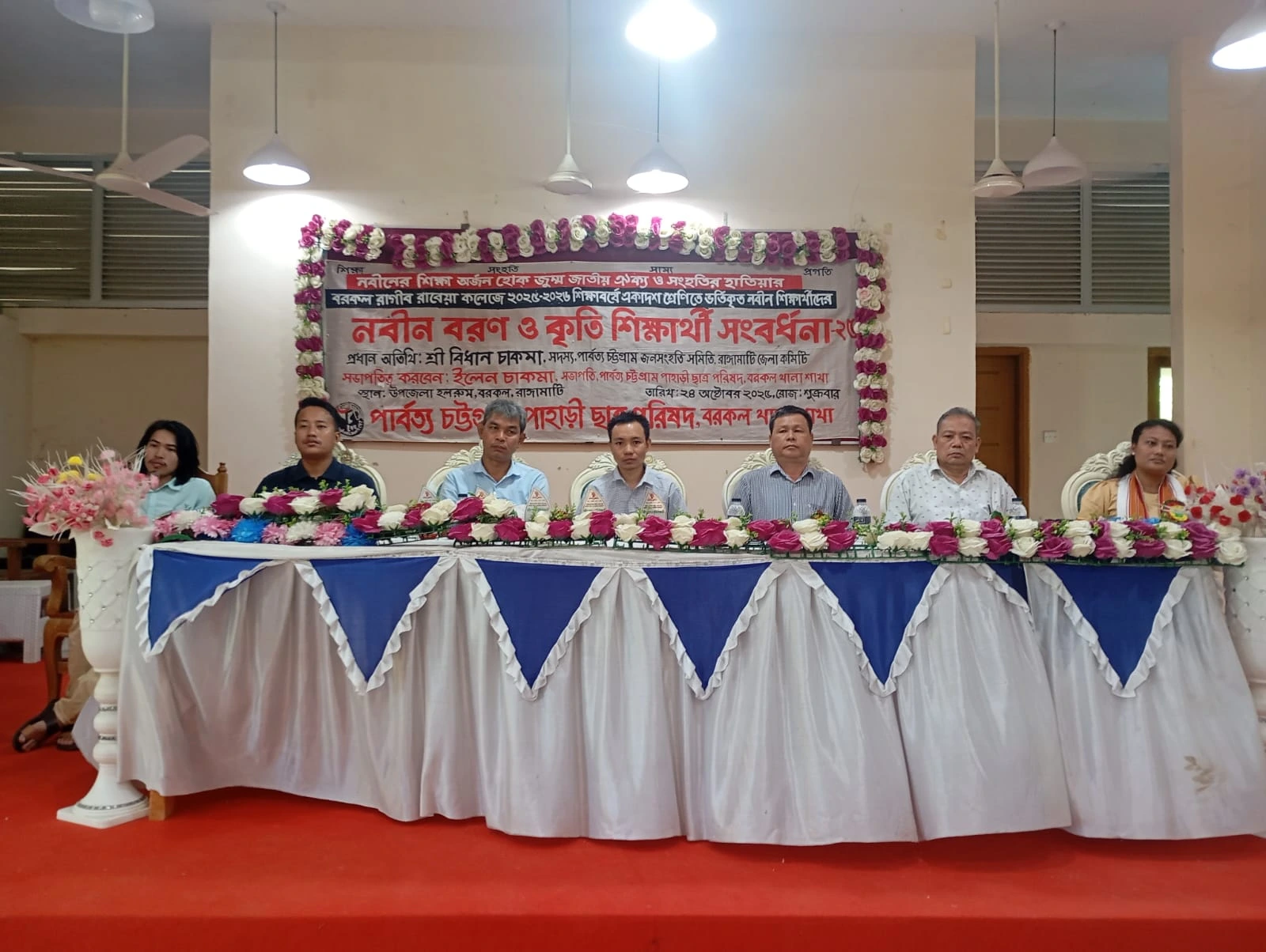 হিল ভয়েস, ২৪ অক্টোবর ২০২৫, রাঙ্গামাটি: পাবর্ত্য চট্টগ্রাম পাহাড়ী ছাত্র পরিষদের বরকল থানা শাখার উদ্যোগে আজ ২৪ অক্টোবর ২০২৫ প্রথমবারের মতো বরকল রাগীব রাবেয়া কলেজে ২০২৫-২০২৬ শিক্ষাবর্ষে একাদশ শ্রেণিতে ভর্তিকৃত শিক্ষার্থীদের “নবীন বরণ ও কৃতি শিক্ষার্থী সংবর্ধনা” অনুষ্ঠান অনুষ্ঠিত হয়।
