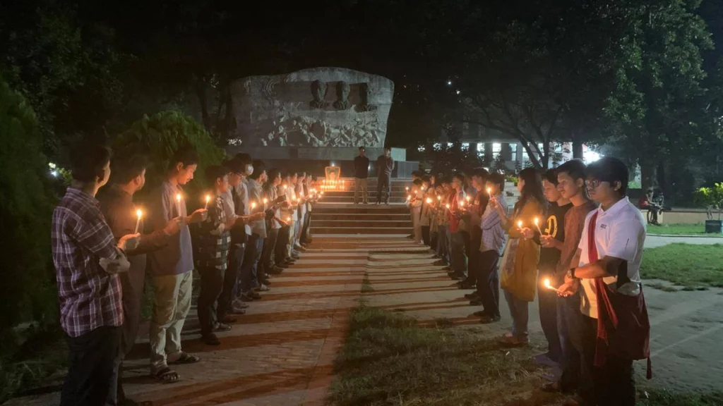 হিল ভয়েস, ১১ নভেম্বর ২০২৫, রাজশাহী: গতকাল ১০ নভেম্বর ২০২৫ রাজশাহী বিশ্ববিদ্যালয় বুদ্ধিজীবী চত্বর প্রাঙ্গণে পার্বত্য চট্টগ্রাম পাহাড়ী ছাত্র পরিষদের রাজশাহী মহানগর শাখার উদ্যোগে মহান নেতা মানবেন্দ্র নারায়ণ লারমা (এম এন লারমা) ৪২তম মৃত্যুবার্ষিকী ও স্মরণ সভা আয়োজন করা হয়।